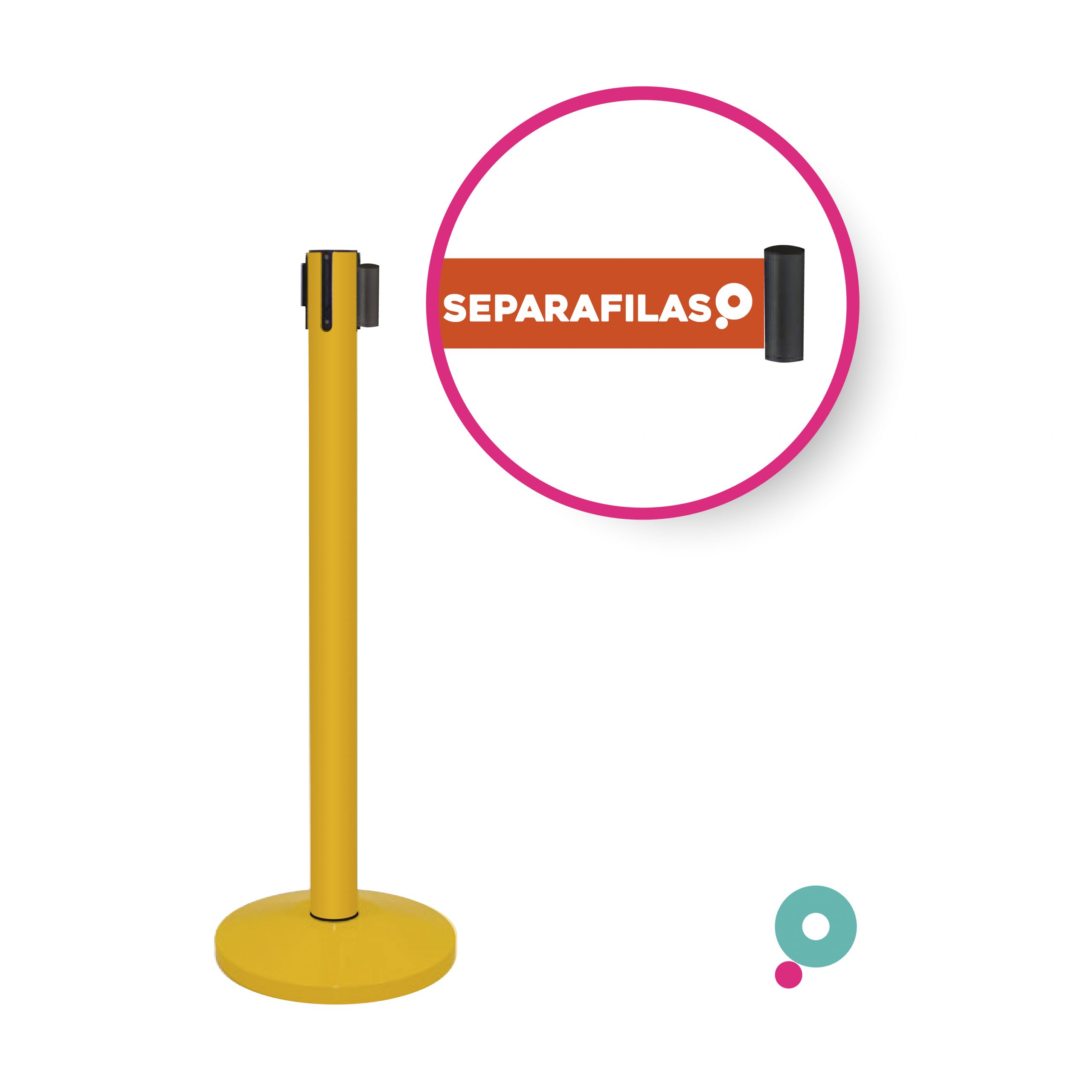 Poste y Base Amarillos armable con cinta retráctil brandeada y/o personalizada con logo en Blanco.
