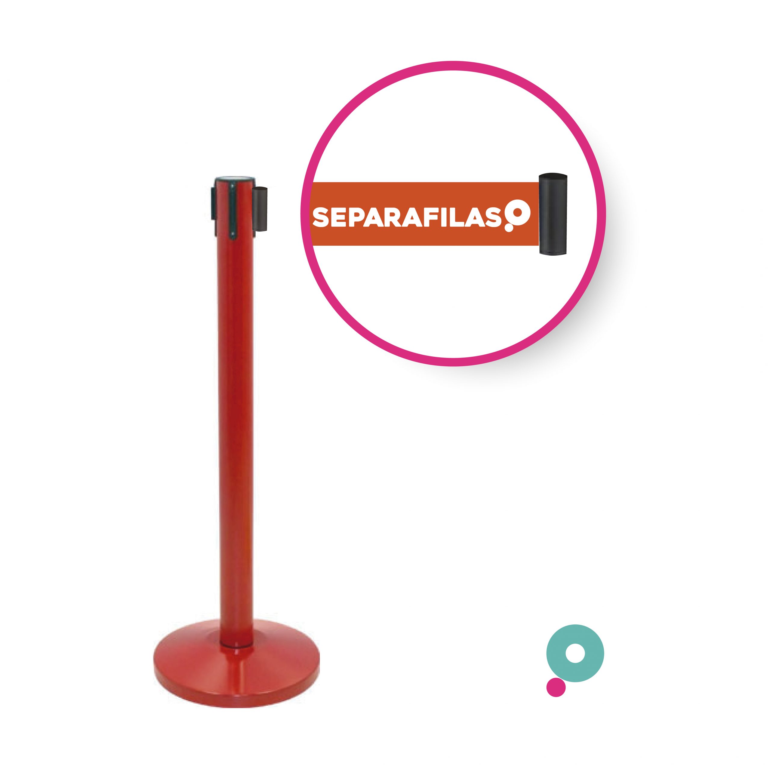 Poste y Base Rojo armable con cinta retráctil brandeada y/o personalizada con logo en Blanco.