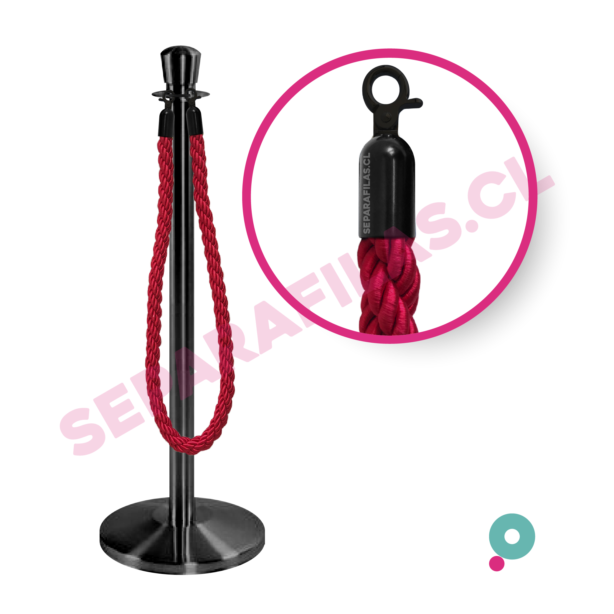 Separafilas modelo Corona Armable Poste y Base NEGRA con cordón trenzado ROJO y enganches negros.