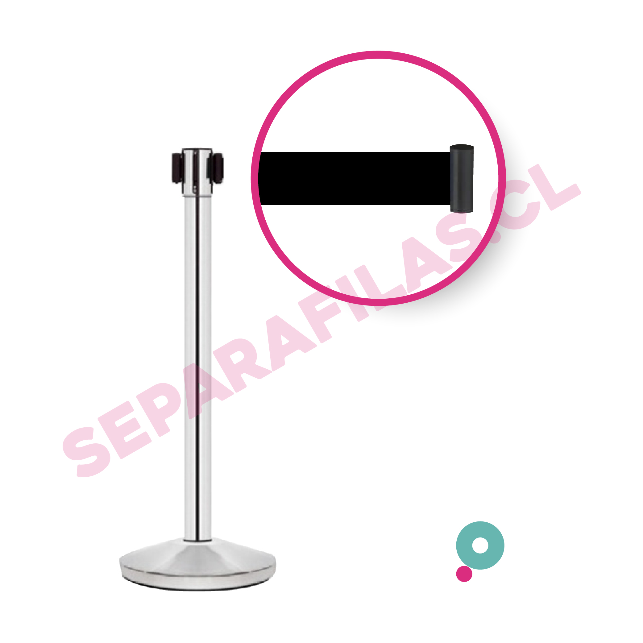 InicioSeparadores de Fila CROMADOS con cinta retráctil Separador de Filas Cromado con Cinta Negra