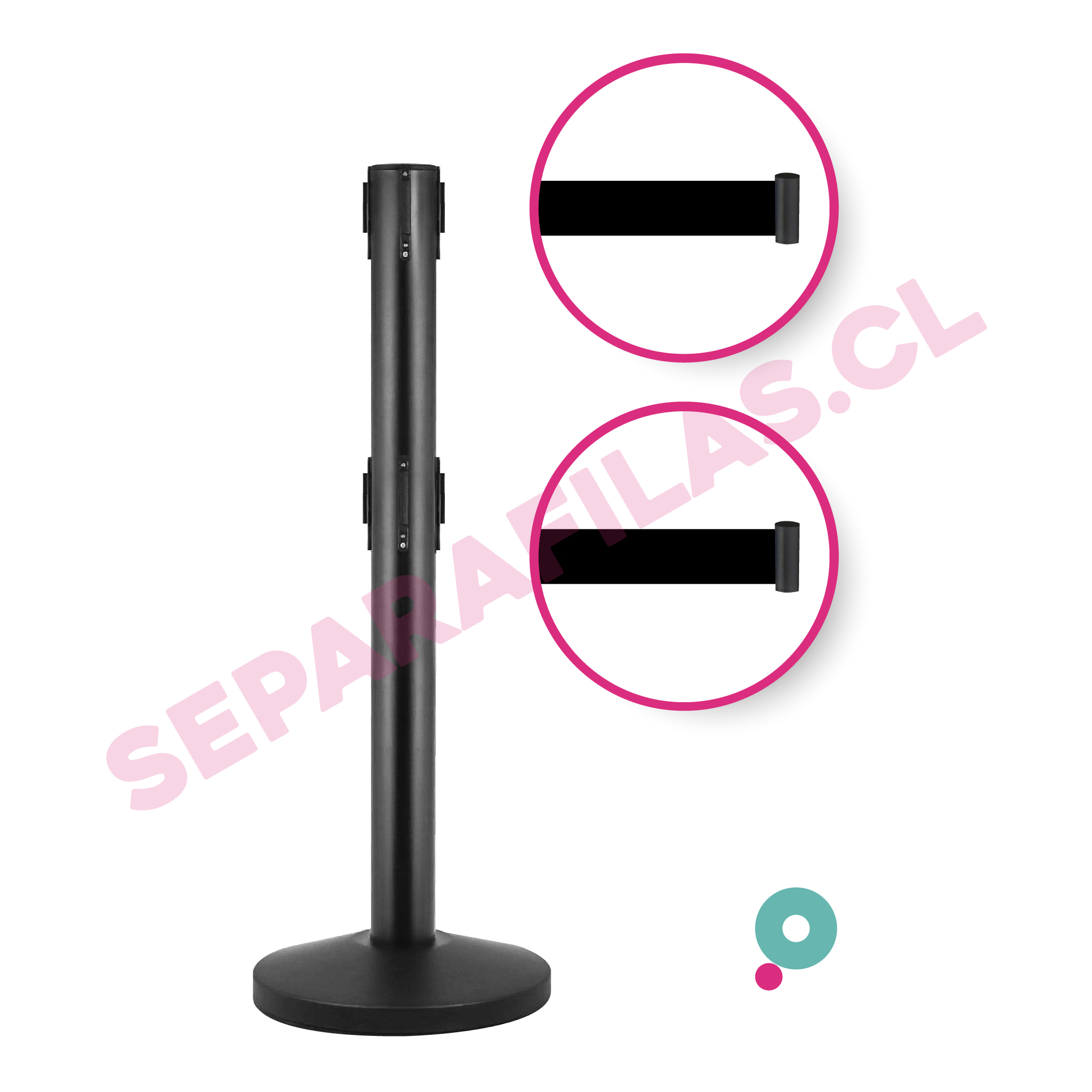 Poste y Base armable Negro con DOBLE cinta retráctil NEGRA