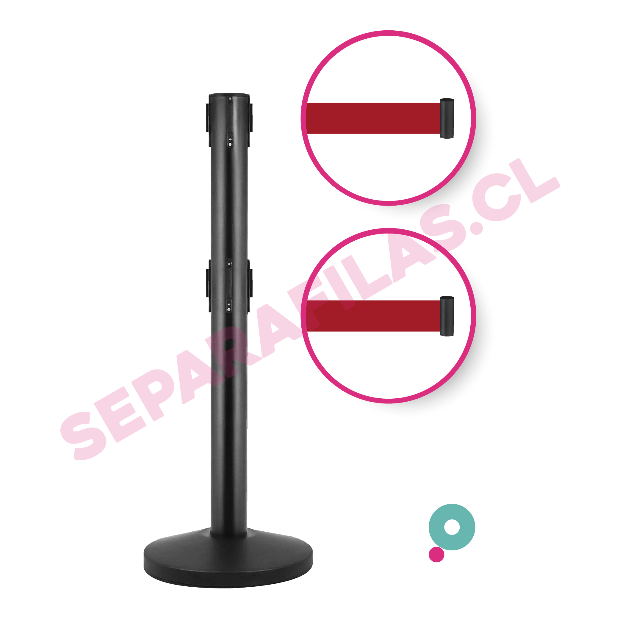 Poste y Base armable Negro con DOBLE cinta retráctil ROJA